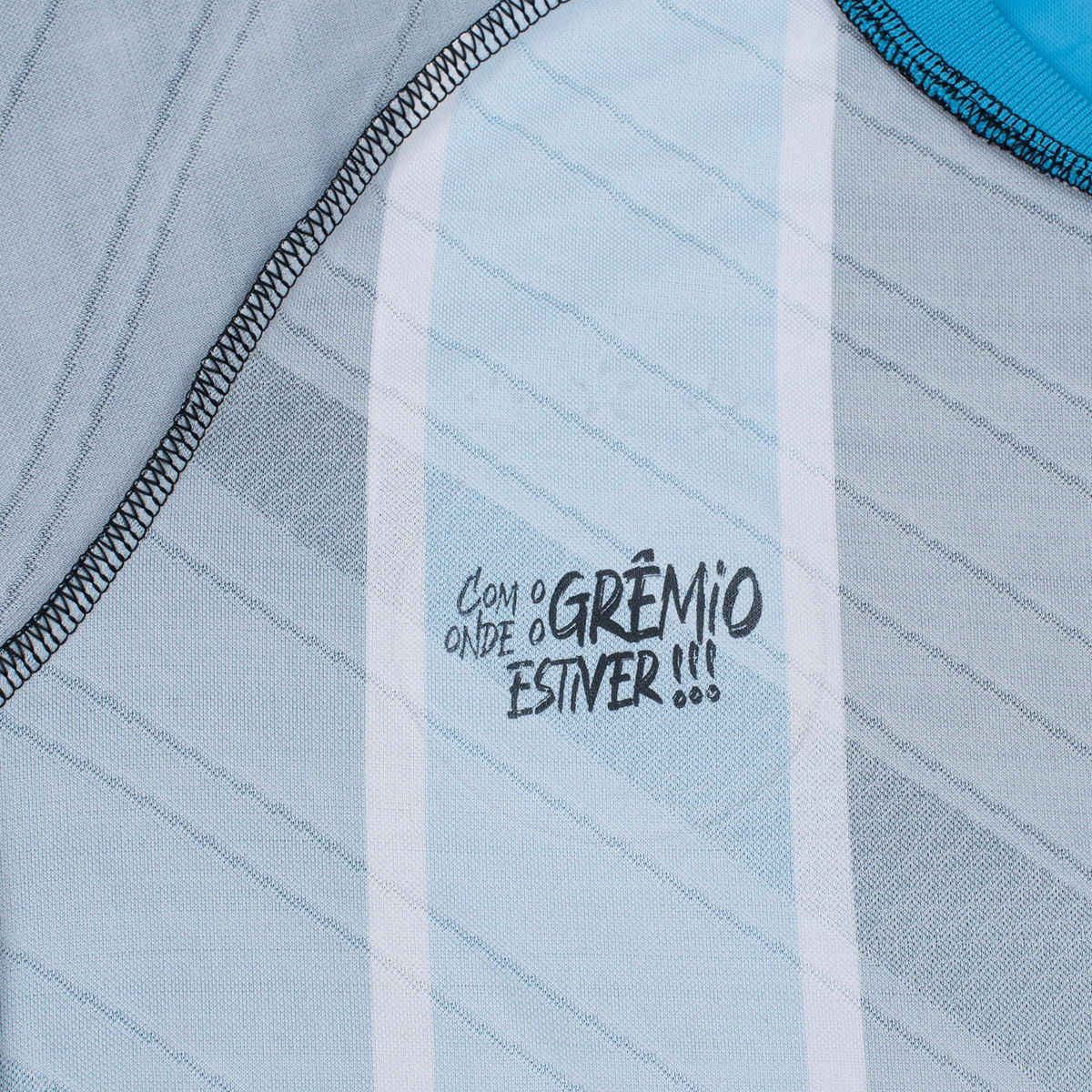 Escudo em TPU 3D “vitrificado” com a estampa interna ""Com o Grêmio onde o Grêmio estiver"", simbolizando a paixão e a lealdade do torcedor;